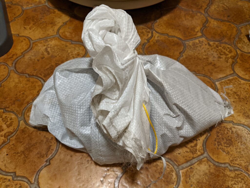 Sieht nach wenig aus, ist es auch. Soll ja nur das Restwasser aufnehmen. Der Rest kommt dann oben drauf. Ich kann es kaum fassen. Es ist endlich soweit. Es sind alle Vorbereitungen getroffen und die Würmer können in ihr neues zu Hause. Vorsichtig und voller Spannung nehme ich den Sack aus dem Karton und drehe ihn um…
